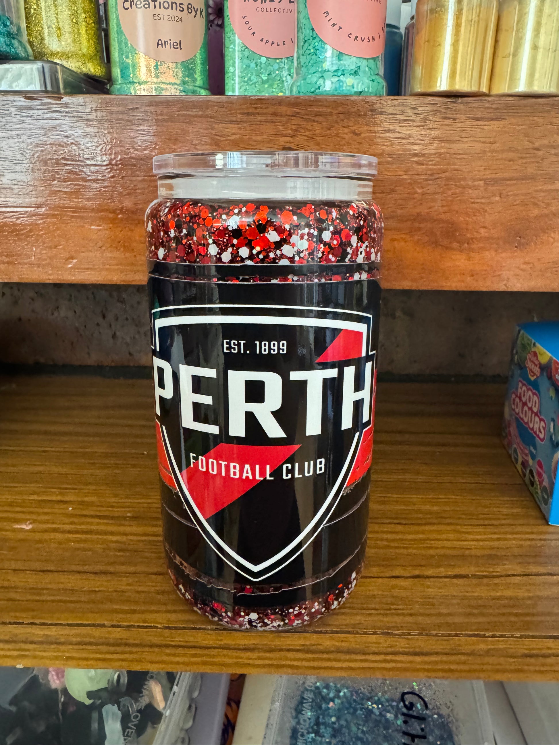 Elevate your game day experience with the WAFL teams custom made cups. Available in a 16oz snow globe or a classic 16oz Libby can, this unique product allows you to showcase your team spirit while enjoying your favourite beverages. Personalize it to make every sip a celebration, whether you're cheering from the stands or relaxing at home. Perfect for fans of all ages!